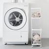 シンプルでスタイリッシュなデザインの「ランドリーワゴン+バスケット タワー スリム」。どんな空間にも馴染み、スリム設計で洗濯機横などの隙間にもすっきり収まります。M・Lの2サイズバスケットで洗濯物を分別でき、風通しの良いワイヤー形状で湿気がこもりにくい設計。キャスター付きワゴンは移動もスムーズ。