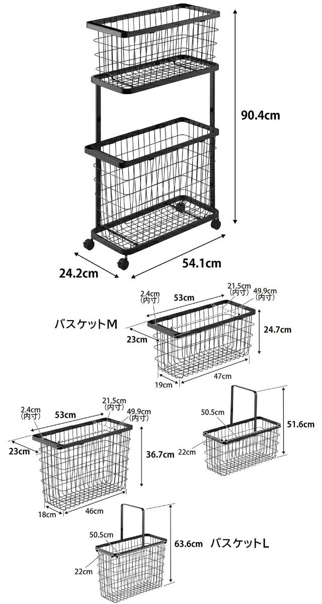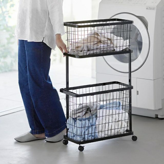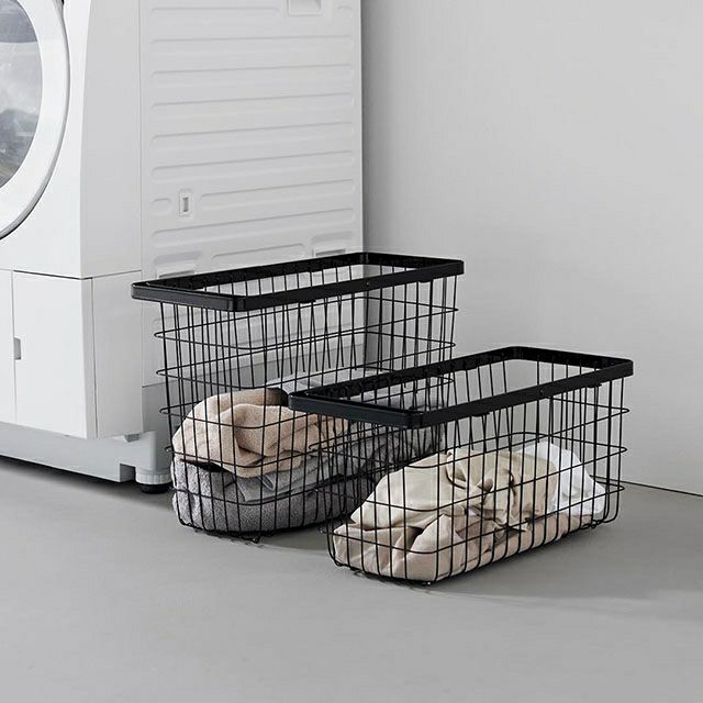 風通しが良く湿気のこもりにくいワイヤー形状のバスケット。M、Lとサイズが違うので、おしゃれ着や色柄ものなど、上下で洗濯物を分別できて便利です。
