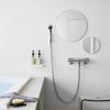 浴室にぴったりのおしゃれなガラス製ミラー「tower マグネットバスルームミラー 丸型 23cm」です。透明感がある鏡はくもり止めフィルムが貼ってあり、シャワー中もクリアな視界をキープします。鏡と壁の間に指が入る構造だから、サッと取り外せてお手入れも簡単。背面の強力マグネットで浴室の好きな場所にしっかり固定でき、使い勝手と美しさを両立したバスミラーです。
