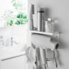 ドライヤーやヘアーアイロンはもちろん、ヘアブラシやスタイリング用品、洗面小物をまとめて収納できます。壁掛け収納で場所を取らず、洗面台まわりのスペースも有効活用できます。