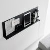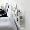 ベッドサイドやリビングの壁面に手軽に収納スペースが作れるスチールパネル。リモコンやスマホ、タブレットPC、ペットボトルなどを一括収納できます。