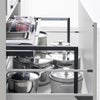 シンク下の引き出しに置くだけで収納スペースが増やせるスチールラック。2段収納にすることで空きスペースを有効活用!フライパンやボウル、ざるなどの調理道具の収納に便利です。