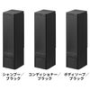 シャンプー、コンディショナー、ボディソープの3種展開。シンプル&モダンな印字プリントも主張しすぎないのがポイントです。