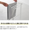 タオルを横からスッと掛けられる便利なタオルハンガー。横にフレームがないデザインなので、隙間に収納しても横から楽に掛けられます。