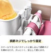 スチールワゴンのバスケットに差し込んで、調節ネジで締めるだけの簡単設置。しっかり固定するのでズレにくく、安心して使えます。