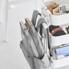 耐荷重は5kgと丈夫で安心。バッグの肩ベルトをハンガーバーの左右から掛けるだけで収納できます。
