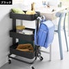 お手持ちのスチールワゴンに、リュックやランドセルが掛けられる便利なハンガー。学習用品と一緒に収納できるのでリビング学習にもおすすめです。