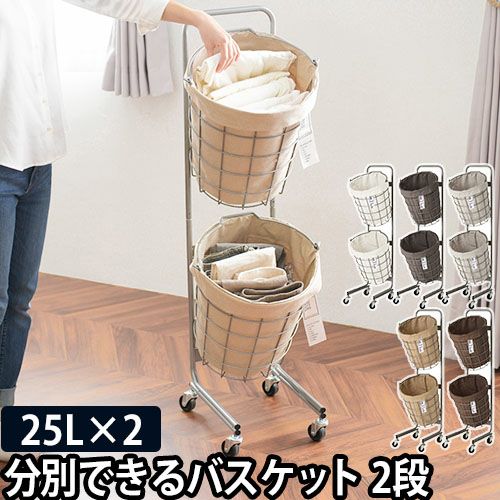 ランドリーバスケット ダブル 25L キャスター 2段 スリム 大容量 洗濯 おしゃれ 洗える 洗濯カゴ