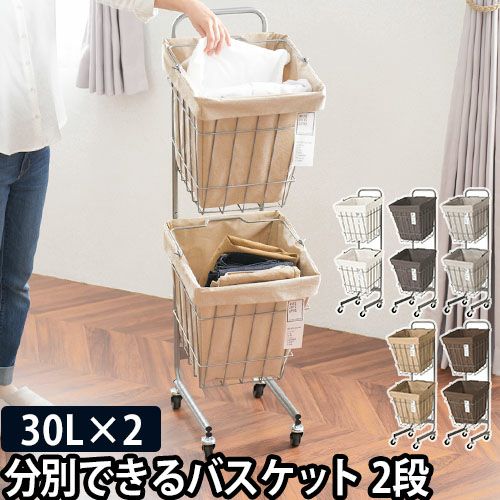 ランドリーバスケット ダブル 30L キャスター 2段 スリム 大容量 洗濯 おしゃれ 洗える 洗濯カゴ