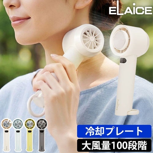 ハンディファンに冷却プレートを搭載した手持ちミニ扇風機「ELAiCE アイファン フリーズ3」。100段階調節の大風量の風と、前面のペルチェ式冷却プレートで暑い日もヒンヤリ涼しい!軽量・コンパクトサイズ、カラビナ付きで持ち運びにも最適なので、この夏の暑さ対策にぴったりです。カラビナを倒してスタンドとして使えば、卓上扇風機に。