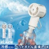 専用の給水ボトルに加え、付属のアタッチメントを使えば市販のペットボトル(2種類の口径に対応)を取り付け可能。大容量のペットボトルを使えば、長時間のミスト噴射を楽しめます。