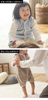 シンプルで優しいデザイン。ボタンの留め方でロンパースやベストに。お子様の成長に合わせて長くご愛用いただけます。