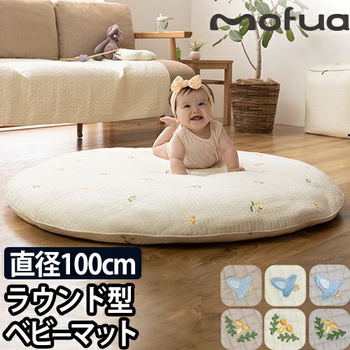 モフア ベビーマット イブル ラウンド型 丸洗いできるベビーマット 刺繍入 364659 ベビークッション 円形 ベビー プレイマット カバー お昼寝 ママ 厚手 マタニティ 洗える 赤ちゃん かわいい コットン 洗濯 綿 直径100cm ベビーマット 丸洗い クッション 1年保証 mofua