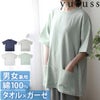 表は爽やかなガーゼ、裏は柔らかいタオル素材の二重織りで、程よい厚みのあるルームウェア。