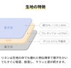 綿の柔らかさとリネンのシャリ感を掛け合わせた生地は、ハリがありながらもフワッとした肌触りで吸湿・放湿性に優れ、サラッと感が続きます。