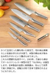 小型包丁としてもお使い頂ける13cmと適度な刃渡りのあるGS-3。食材を手に持ってのお野菜の皮むき等、細かい作業はもちろん、まな板に食材をおいてのちょっとした切り分け作業にもお使い頂ける大変便利な一本です。さらに簡易シャープナーが付き。