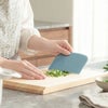 適度な柔らかさがあるポリエチレン製。まな板の上の細かいみじん切り野菜なども、サッと集めてこぼさず鍋やフライパンに移せます。