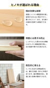 ヒノキは適度な弾力を持ち、刃当たりが柔らか。包丁の衝撃を吸収し、刃こぼれを防ぎます。