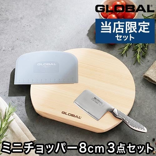GLOBAL (グローバル) ミニチョッパープレイン 8cm GS-200、カッティングボードD型 25cm、GLOBALスクレーパー (グレー)(GKW-01)セット