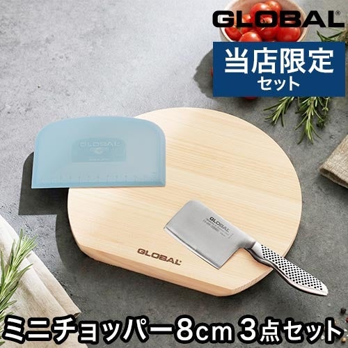 GLOBAL (グローバル) ミニチョッパープレイン 8cm GS-200、カッティングボードD型 25cm、GLOBALスクレーパー (アクアフォグ)(GKW-01/AF)セット