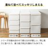 スタッキングができる衣装ケース。収納量に合わせて多段化したり、別売り専用パーツを組み込むことで、目的通りの収納システムが構築できます。