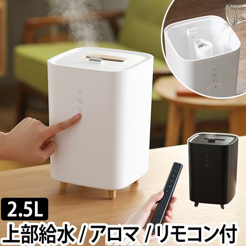 通常サイズと変わらず、上から水を給水できる便利な上面給水タイプ。乾燥する時期は毎日使うものですから、給水がラクなものに尽きます。デザインのワンポイントとして映えるウッド調のフタや脚もオシャレですよね。