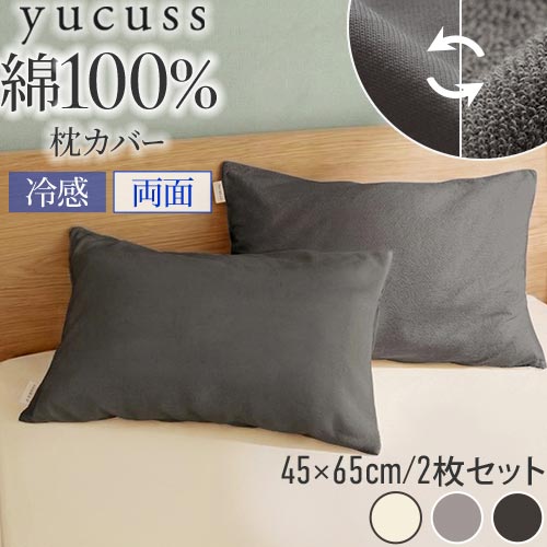 yucuss (ユクスス) さらっとひんやり 綿100% リバーシブル 枕カバー 2枚セット