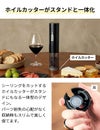 シーリングをカットするホイルカッターがスタンドにもなる一体型のデザイン。