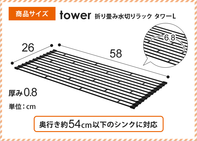 | 対応シンク | 【水切り】奥行き約54cm以下のシンク ※商品自体の奥行きサイズは約58cmです。 |