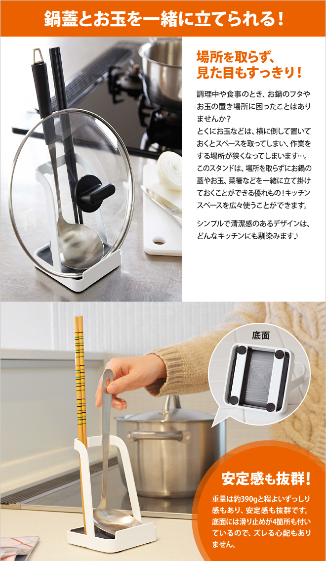 【お玉&鍋ふたスタンド】 - 収納する際は、片寄らないようバランスよく収納してください。