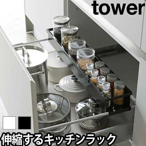 tower タワー シンク下収縮キッチンラック スリム キッチン収納 調味料ラック おしゃれ 山崎実業