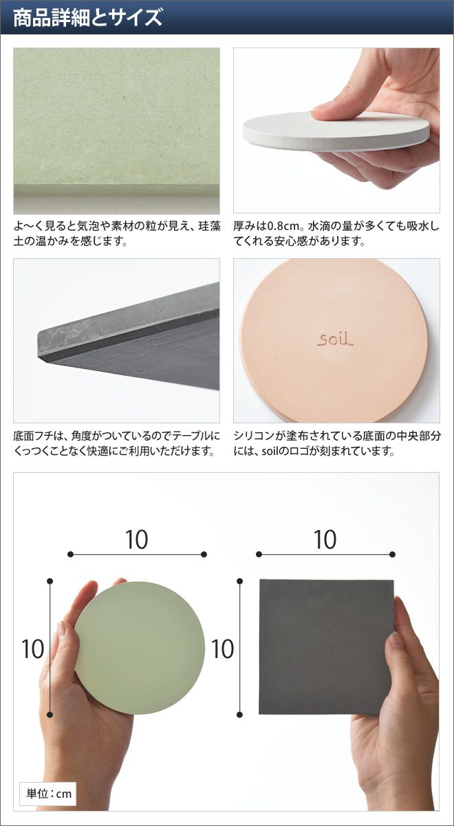 他の画像を見る 吸水性に優れた珪藻土を使用したコースター。グラスから落ちた水滴を、カラッと吸収してテーブルの上を濡らしません。ビアグラスも置けるラージサイズです。日本製。 soil コースター ラージ 2枚セット 日本製 当店特別価格 ¥ 2,200 税込 詳細を見る お気に入りに登録する
