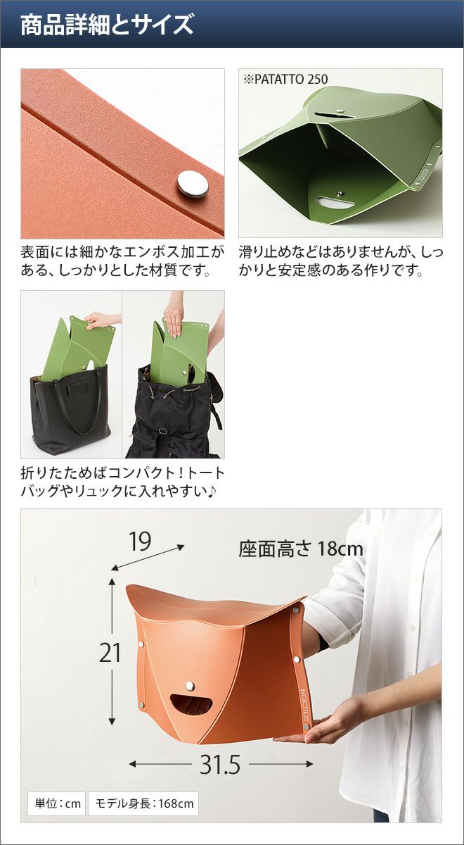 他の画像を見る 軽量でコンパクト、収納時もかさばらない!新発想の折りたたみチェアPATATTO 180は更に小さく畳んで、持ち運びに便利になりました! 折りたたみチェア PATATTO 180 当店特別価格 ¥ 1,870 税込 詳細を見る お気に入りに登録する