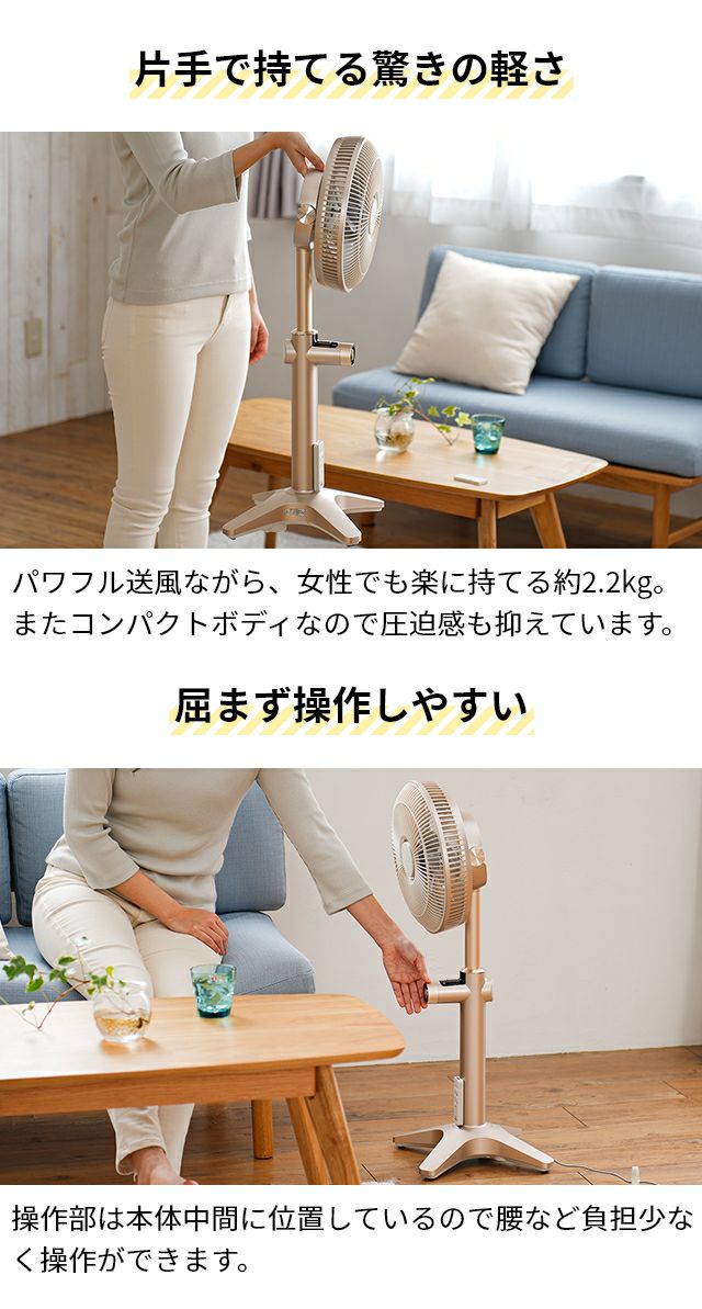 他の画像を見る 新開発のカモメファンが約23m先まで心地よい風を届ける!サーキュレーターとしても使え、DCモーターで静音・省エネ、また軽量コンパクトで移動もラクな扇風機です。 扇風機 【選べる豪華特典】 カモメファン ライト K-F25AY リビングファン リビング扇風機 軽量 小型 静音 リビング 寝室 dc dcモーター おしゃれ 部屋干し 衣類 乾燥 梅雨 省エネ リモコン アロマ 首振り 真上 かもめ カモメ Kamomefan +c series 当店特別価格 ¥ 29,700 税込 詳細を見る お気に入りに登録する