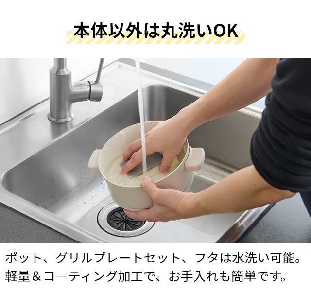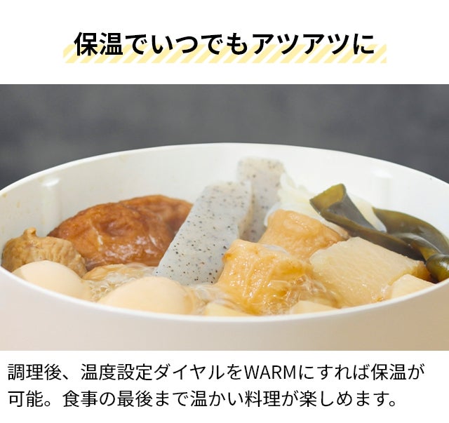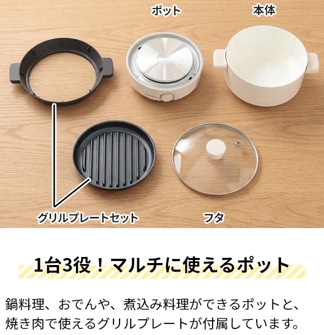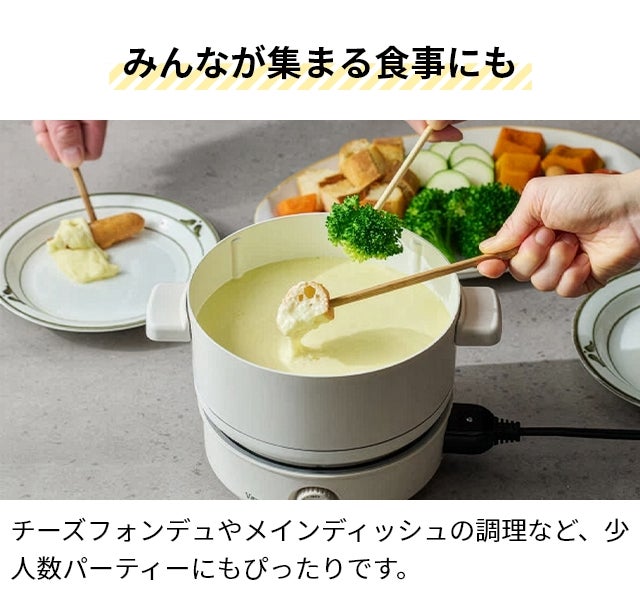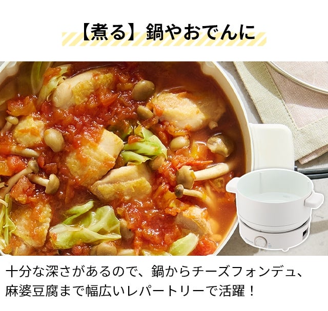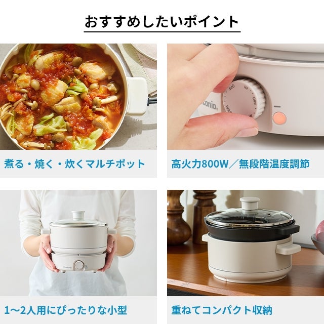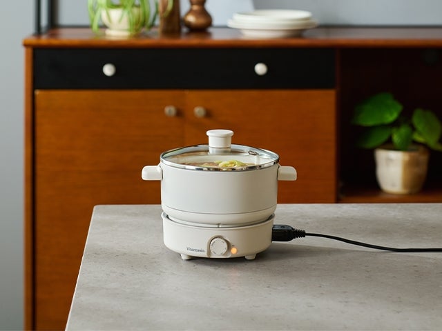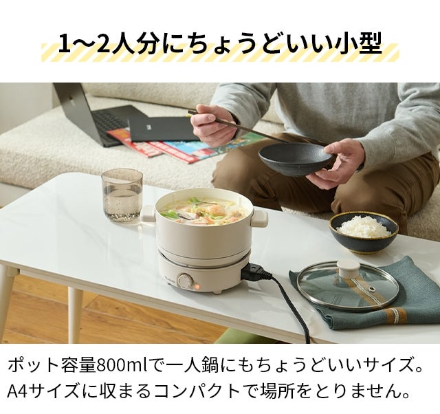 他の画像を見る 小型でシンプル。いつものテーブルで調理して、そのまま食事も楽しめる電気鍋。コンパクトなのにハイパワーな800W、かつ容量800mlで、様々な料理があつあつで楽しめます。 ビタントニオ 【選べる豪華特典】 電気鍋 ミニポット VPT-10 グリル鍋 卓上鍋 ホットプレート 深鍋 キッチン家電 一人鍋 1人用 両手鍋 油が落ちる 2人用 洗いやすい 焼肉 おしゃれ 保温 かわいい マルチポット 小型 蓋付き 丸型 Vitantonio 当店特別価格 ¥ 8,800 税込 在庫切れ 詳細を見る お気に入りに登録する