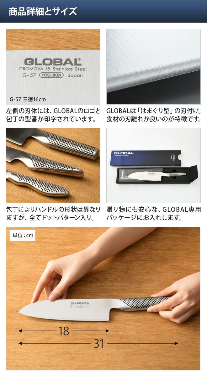 他の画像を見る 三徳包丁/包丁/ステンレス包丁/三徳/ナイフ/グローバル包丁/ほうちょう/グローバル/日本製/ステンレス/オールステンレス/かっこいい/おすすめ/魚/さばき/高級/捌く/くっつかない/右利き/左利き/プロ/用/GLOBAL 【無料ラッピング】【豪華特典付き】GLOBAL 三徳包丁 G-46 当店特別価格 ¥ 11,000 税込 詳細を見る お気に入りに登録する