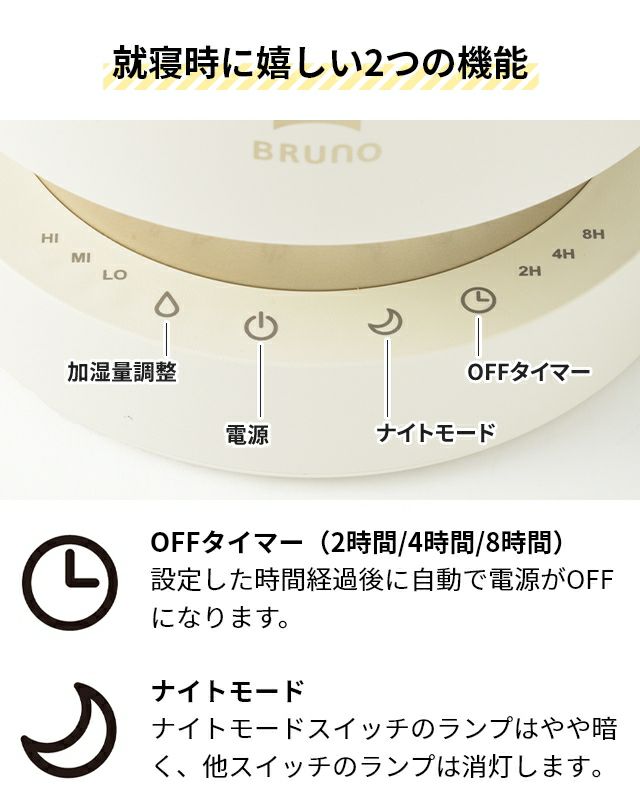 他の画像を見る タンクと電源ベースが分離するので、給水しやすく日々のお手入れも簡単な超音波加湿器。加湿量は3段階に調節できて、アロマウォーター対応。オフタイマー機能付きです。 ブルーノ 加湿器 アロマ 2L超音波加湿器 スリムミスト BOE133 卓上加湿器 卓上 おしゃれ お手入れ簡単 リビング 北欧 可愛い コンパクト 寝室 シンプル 大容量 超音波式 持ち運び 上から給水 上部給水 一人暮らし BRUNO SLIM MIST 当店特別価格 ¥ 8,250 税込 在庫切れ 詳細を見る お気に入りに登録する