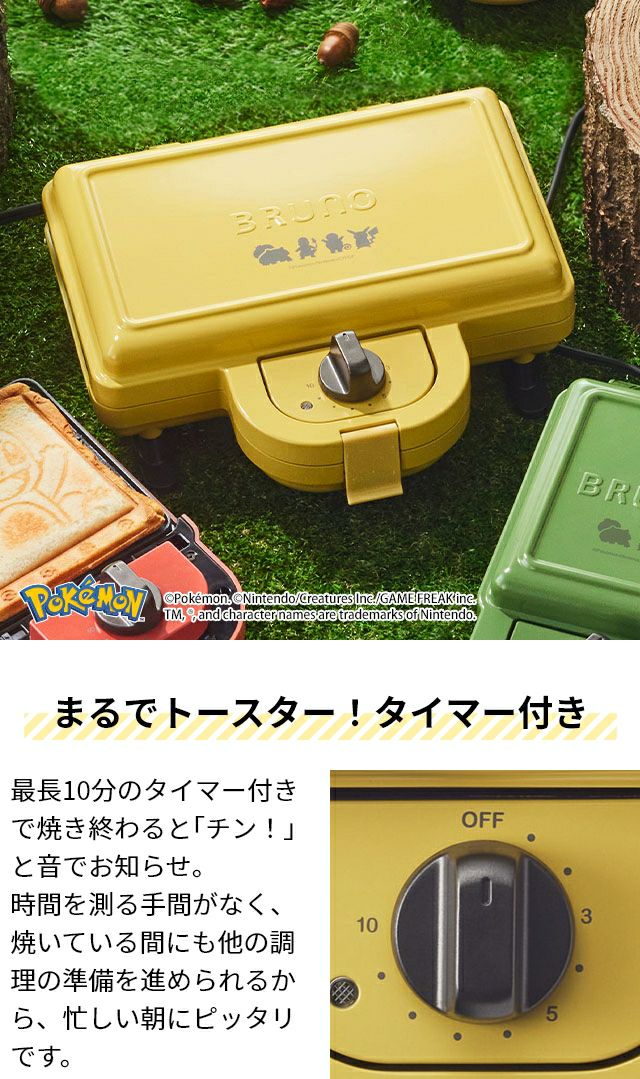 他の画像を見る 食パンの耳を切らずにセットできる、BRUNOホットサンドメーカーに、ポケモンデザインが仲間入り!ピカチュウたちの焼き目がついた、あつあつホットサンドが食べられます! ブルーノ ポケモン ホットサンドメーカー ダブル BOE132 2枚焼き 耳まで 電気 タイマー おうちカフェ 食パン サンドイッチ 朝食 おしゃれ かわいい 着脱式 洗える ピカチュウ ヒトカゲ フシギダネ ゼニガメ ミニケーキ 人形焼 おすすめ BRUNO 当店特別価格 ¥ 10,010 税込 在庫切れ 詳細を見る お気に入りに登録する
