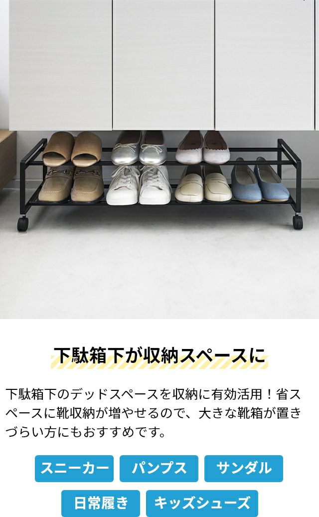 他の画像を見る 下駄箱下のデッドスペースを活用して、省スペースに靴収納が増やせるシューズラック。スニーカーなどの大人用の靴を約8~10足収納でき、キャスター付きで移動もらくらく! 山崎実業 引き出せるキャスター付きシューズラック タワー 2段 1624 1625 靴箱 シューズボックス シューズホルダー スリム 省スペース おしゃれ キャスター スチール 下駄箱 玄関 tower 靴収納 玄関収納 yamazaki タワーシリーズ 当店特別価格 ¥ 4,950 税込 在庫切れ 詳細を見る お気に入りに登録する