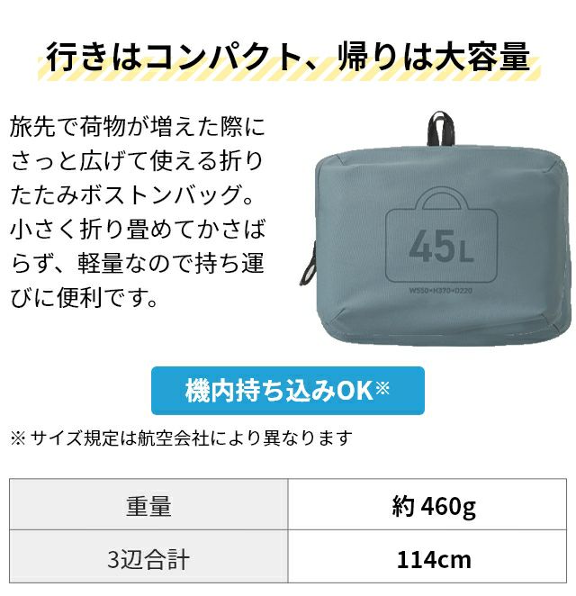 他の画像を見る 旅先で荷物が増えた際に、さっと広げて使えるボストンバッグ。折りたためばかさばらず、軽いので持ち運びやすい優れもの。優れた強度と撥水性、大容量で普段使いにも活躍。 ミレスト キャリーオンバッグ ポケッタブルボストンバッグ 45L 折りたたみバッグ 旅行バッグ カバン ポケッタブルバッグ 鞄 メンズ ファスナー付き かわいい レディース 折り畳み 旅行 軽量 大容量 機内持ち込み 撥水 MILESTO 当店特別価格 ¥ 4,950 税込 在庫切れ 詳細を見る お気に入りに登録する