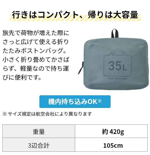 他の画像を見る 旅先で荷物が増えた際に、さっと広げて使えるボストンバッグ。折りたためばかさばらず、軽いので持ち運びやすい優れもの。優れた強度と撥水性、大容量で普段使いにも活躍。 ミレスト キャリーオンバッグ ポケッタブルボストンバッグ 35L 折りたたみバッグ 旅行バッグ カバン ポケッタブルバッグ 鞄 メンズ ファスナー付き かわいい レディース 折り畳み 旅行 軽量 大容量 機内持ち込み 撥水 MILESTO 当店特別価格 ¥ 4,620 税込 在庫切れ 詳細を見る お気に入りに登録する