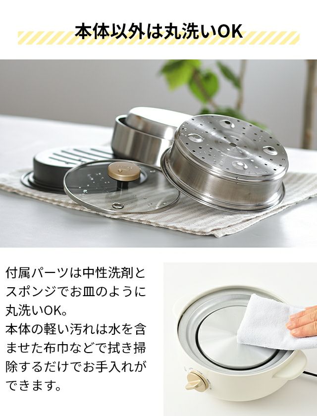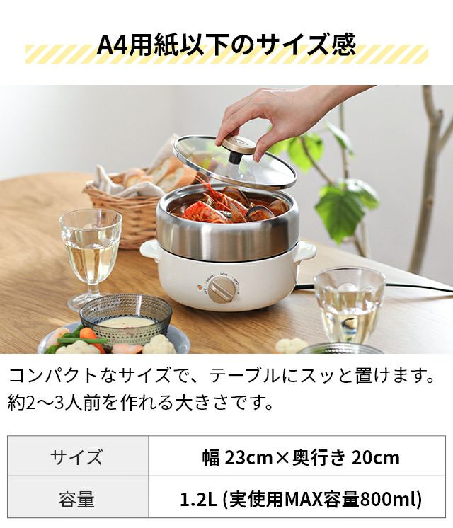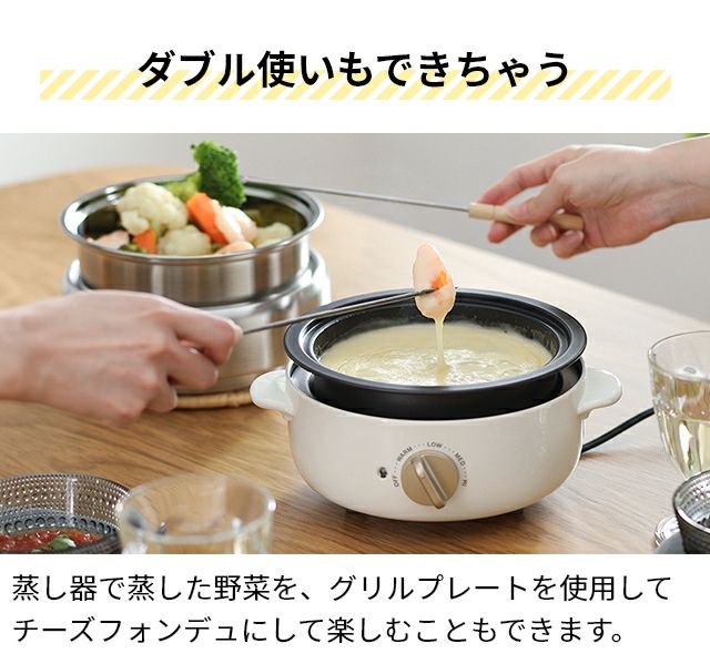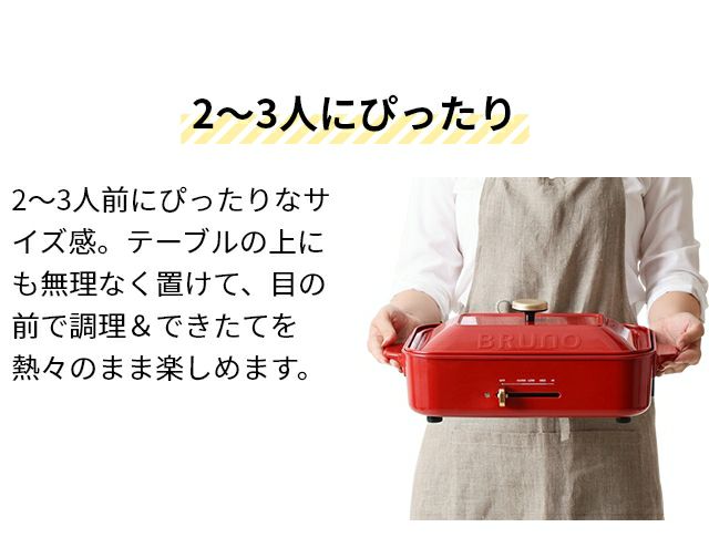 他の画像を見る BRUNO コンパクトマルチグリルポットは、2~3人前の料理に丁度良い、小さいサイズの電気鍋です。グリルプレートや蒸し器などの付属パーツで1年中マルチに活躍します。 ブルーノ 電気鍋 コンパクトマルチグリルポット BOE115 電気グリル鍋 2人用 温度調節 おしゃれ 卓上 洗いやすい 一人用 小型 小さい ホットプレート 炊飯 チーズフォンデュ 炒め物 蒸し野菜 保温 BRUNO COMPACT MULTI GRILL POT 当店特別価格 ¥ 7,150 税込 在庫切れ 詳細を見る お気に入りに登録する