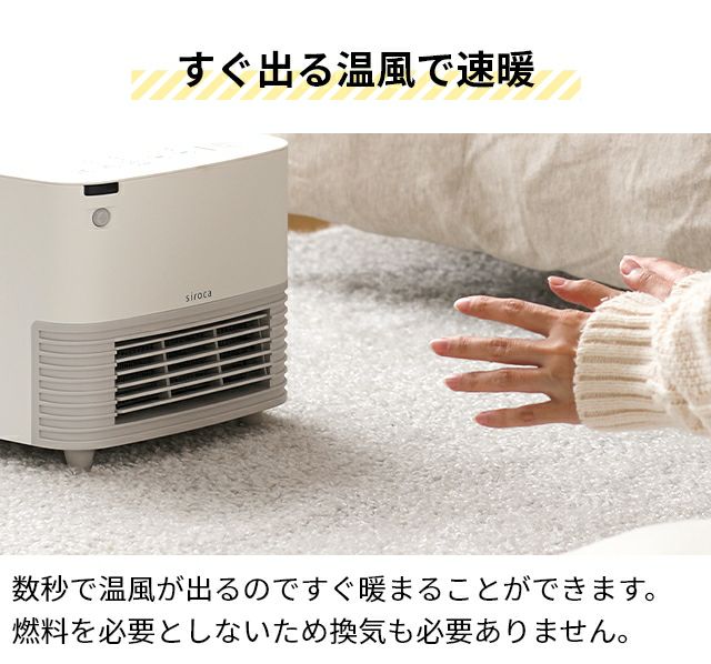 他の画像を見る 大風量、静音、コンパクトさを兼ね備えた、シロカ独自の「ふわビューンUZU(うず)」搭載のファンヒーター。 シロカ 人感センサー付きセラミックファンヒーター ポカ CUBE SH-CF131 小型 電気 静音 おしゃれ 送風 タイマー付き 持ち運び チャイルドロック 人感センサー グッドデザイン賞 リモコン キューブ 洗面所 寝室 換気 siroca 当店特別価格 ¥ 13,800 税込 在庫切れ 詳細を見る お気に入りに登録する