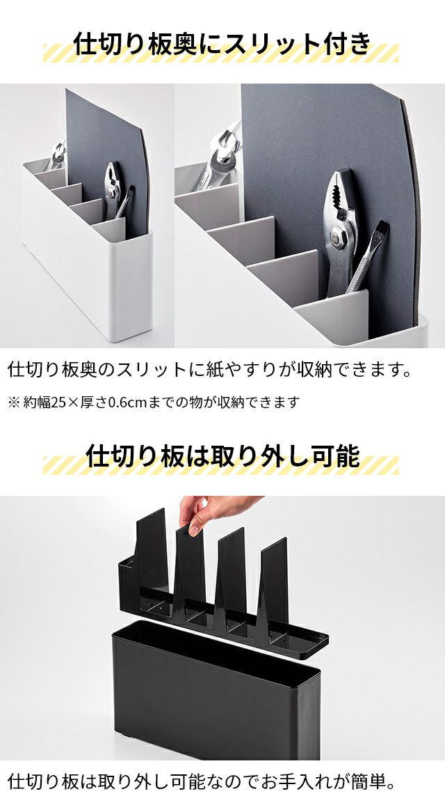 他の画像を見る 作業デスクに工具をまとめて収納できる工具スタンド。仕切り板が4枚入っており、外せばお手入れも簡単。奥行きがスリムだから場所を取りません。シンプルでおしゃれです! 山崎実業 小物入れ 卓上工具スタンド タワー 2024 2025 卓上収納ボックス 小物収納ケース 小物ケース 収納用品 道具箱 仕切り 卓上 大工 箱 オシャレ 文房具 おしゃれ インテリア 工具 シンプル tower 卓上収納 小物収納 yamazaki タワーシリーズ 当店特別価格 ¥ 3,300 税込 在庫切れ 詳細を見る お気に入りに登録する