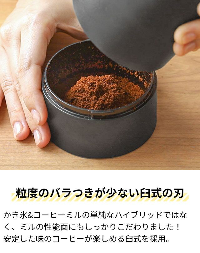 他の画像を見る 挽きたての香りから始める贅沢なひとときを。 電動コーヒーミルとスティックタイプのかき氷器をこれ1台で楽します。 ドウシシャ 電動コーヒーミルかき氷器 DHCI-B3 かき氷機 アイスクラッシャー 電動 臼式 洗いやすい 水洗い 自動 おしゃれ おすすめ 粗さ バラ氷対応 調整 ふわふわ 小型 分解 掃除 受け皿 簡単 DOSHISHA IceShaver CoffeeMill 当店特別価格 ¥ 7,678 税込 在庫切れ 詳細を見る お気に入りに登録する