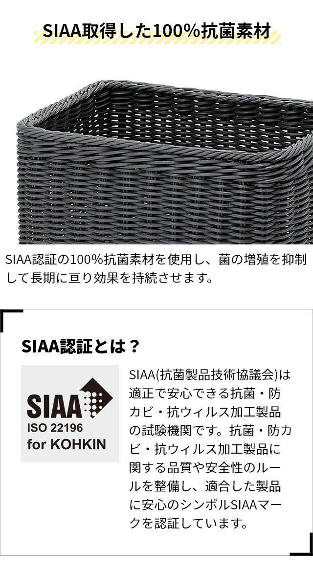 他の画像を見る 100%抗菌素材で作られた樹脂製バスケットです。水に強く丸洗いできて、水回りの収納やレジャーにぴったり!手編みの柔らかいフォルムがインテリアにも映えます♪ キレーネ バスケット ストレージかごL 3P008 かご 籠 ラタン 小物入れ ストレージボックス カゴ 可愛い 北欧 インナーボックス 収納ボックス 服 おもちゃ入れ お風呂 荷物置き おしゃれ コスメ プラスチック 洗濯かご KLEANE 小物収納 抗菌 キッチン 食洗機対応 洗える レンジ対応 当店特別価格 ¥ 6,600 税込 在庫切れ 詳細を見る お気に入りに登録する
