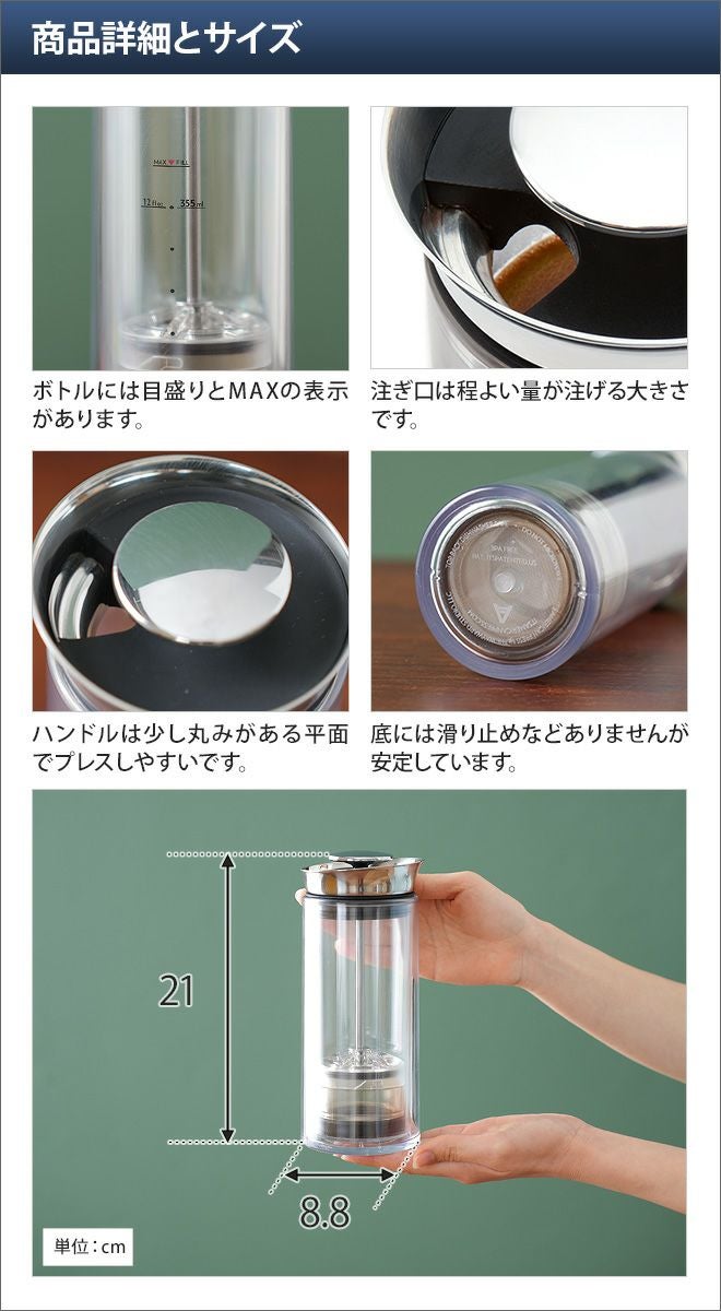 他の画像を見る コーヒープレス/AmericanPress/アメリカンプレス/ステンレス/保温/コーヒーメーカー/コーヒー/二重構造/プレス式/食洗機/カフェプレス/プランジャーポット/カフェプレス/圧力抽出 AmericanPress 当店特別価格 ¥ 14,300 税込 在庫切れ 詳細を見る お気に入りに登録する