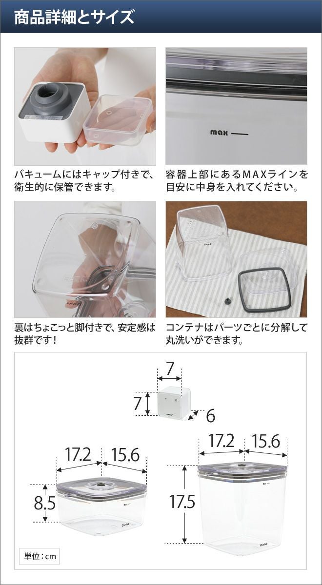 他の画像を見る 真空キャニスター/スクエアタイプ/2.5L/真空/真空保存/保存容器/密閉容器/ストッカー/プラスチック/大容量/電動/コーヒー豆/ドライフード/手動/サラダ/フルーツ/ドッグフード Cielob 真空キャニスター スクエアタイプ 2.5L 真空 真空保存 保存容器 密閉容器 ストッカー 真空パック セーロブ Cielob 当店特別価格 ¥ 3,200 税込 在庫切れ 詳細を見る お気に入りに登録する