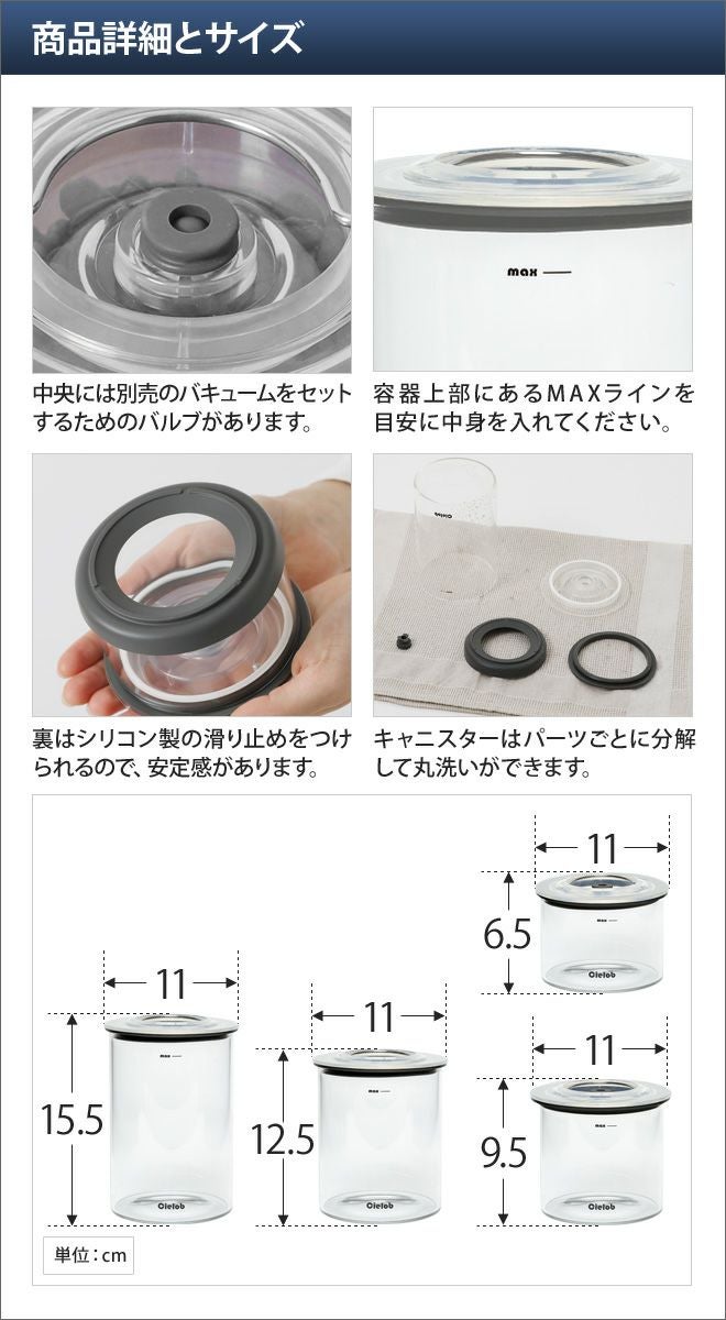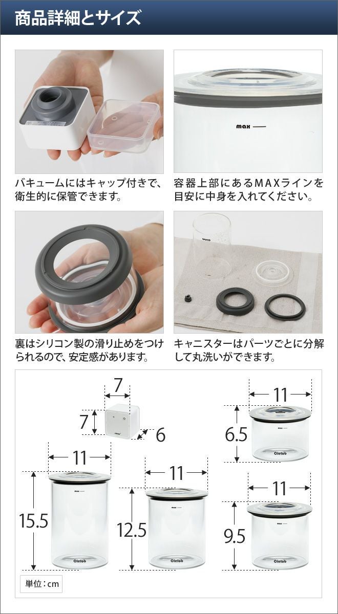 他の画像を見る 真空キャニスター4点セット/キャニスター単品/真空/真空保存/保存容器/密閉容器/ストッカー/ガラス/大容量/電動/コーヒー豆/ドライフード/手動/サラダ/フルーツ/ドッグフード 真空キャニスター4点セット キャニスター単品 真空 真空保存 保存容器 密閉容器 ストッカー セーロブ Cielob 当店特別価格 ¥ 3,900 税込 在庫切れ 詳細を見る お気に入りに登録する