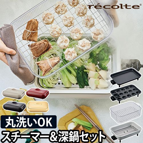 他の画像を見る ホットプレート/鍋/調理/スチーマー/付属/製品/深鍋/プレート/すき焼き/温度/おしゃれ/家電/コンパクト/キッチン/手入れ簡単/インテリア/かわいい/250度/recolte/レコルト/Hot/Plate/ホットプレート レコルト ホットプレート & クリアスチーマー & 深鍋 セット 【3大特典】 RHP-1 RHP-1CS RHP-1SM 当店特別価格 ¥ 21,450 税込 在庫切れ 詳細を見る お気に入りに登録する